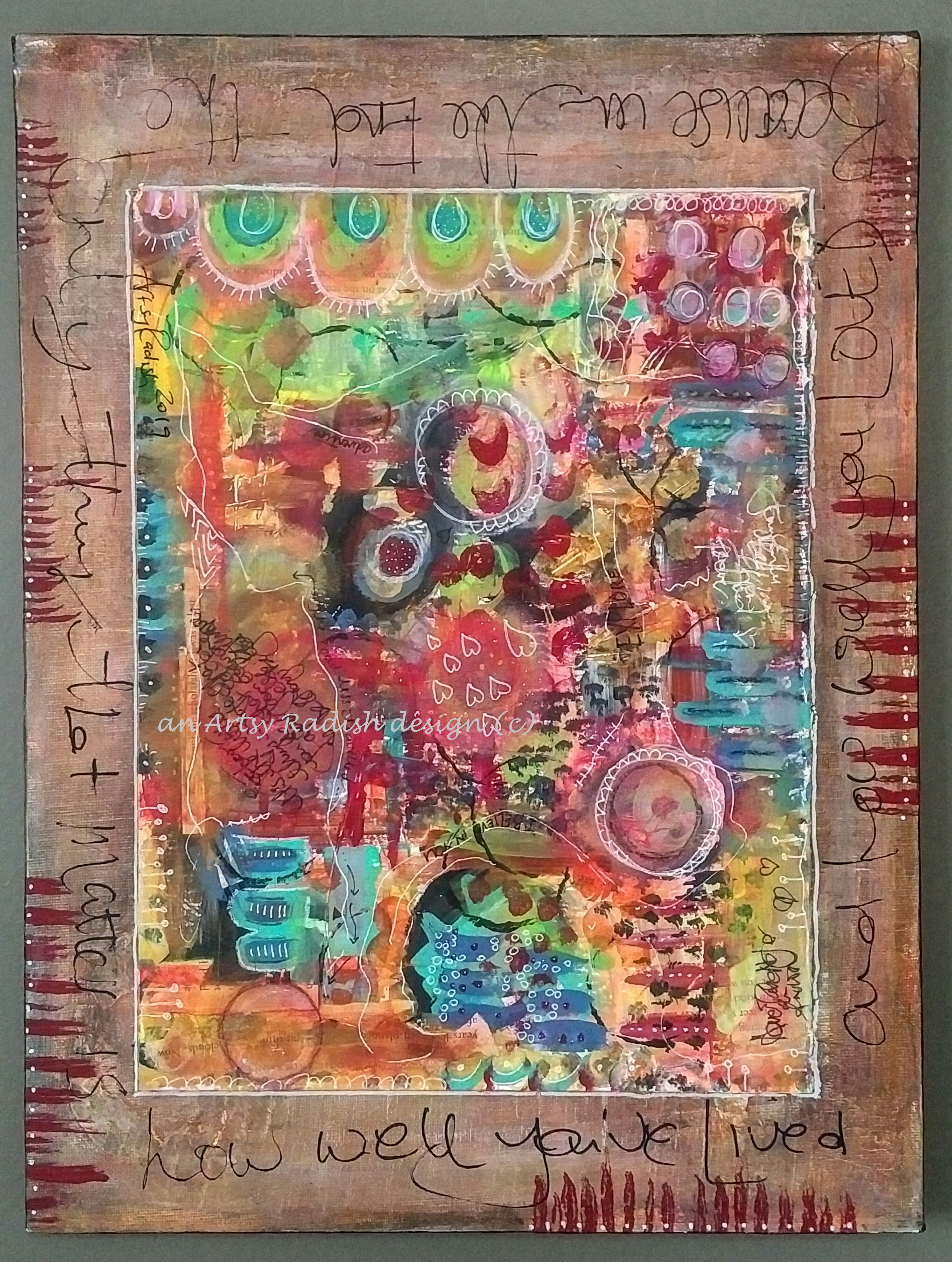 Original mixed media intuitive abstract art on canvas (12″ x 16″).